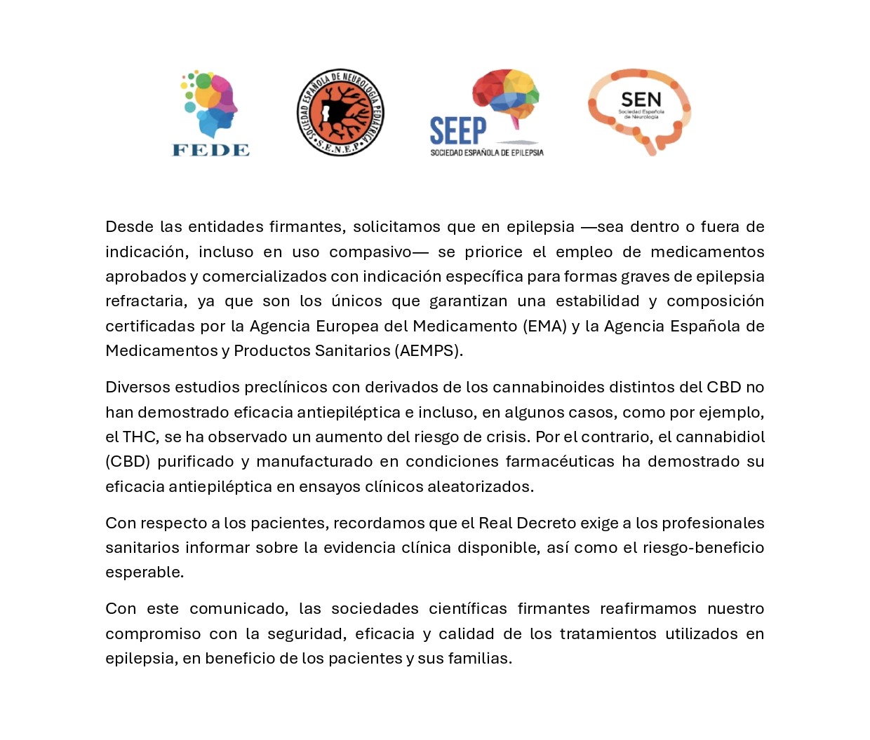 Con este comunicado, las sociedades reafirman su compromiso con la seguridad, eficacia y calidad de los tratamientos para las personas con epilepsia.