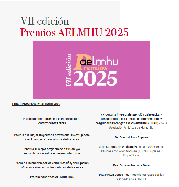Madrid, 5 de noviembre de 2025 — La doctora Patricia Smeyers Durá ha sido reconocida con el premio a la mejor labor de comunicación, divulgación y/o concienciación sobre enfermedades raras en la VII Edición de los Premios AELMHU 2025, organizados por la Asociación Española de Laboratorios de Medicamentos Huérfanos y UltraHuérfanos (AELMHU).